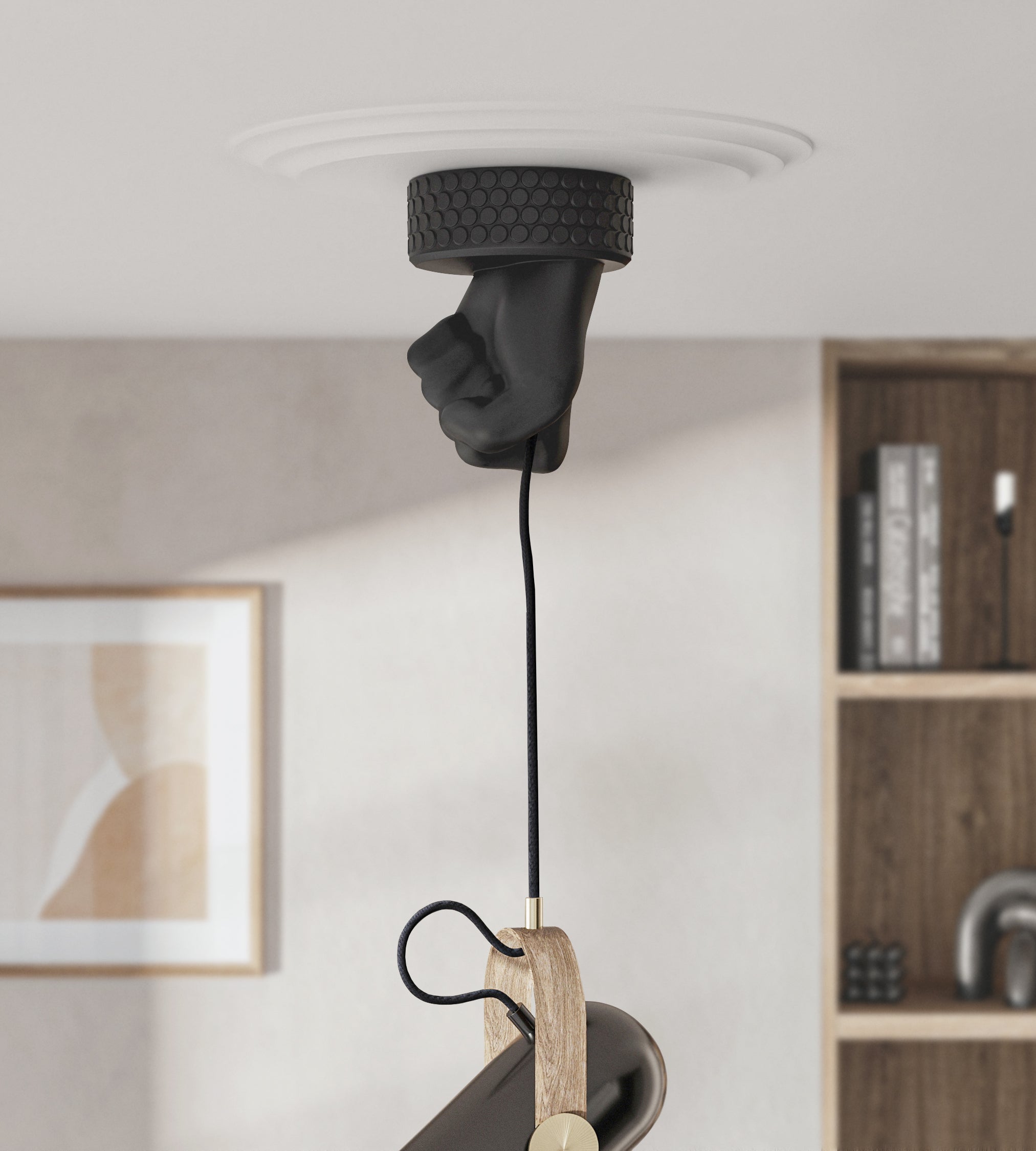 Grab a hold of your own Fist from Arton Wire. What will friends and family say when they come over and see art details in spaces which once used to be overlooked? With the smart, easy and one of a kind ceiling cup you can always count on your lamps hanging beautifully straight. Suitable for almost every lamp which comes with a cord.
